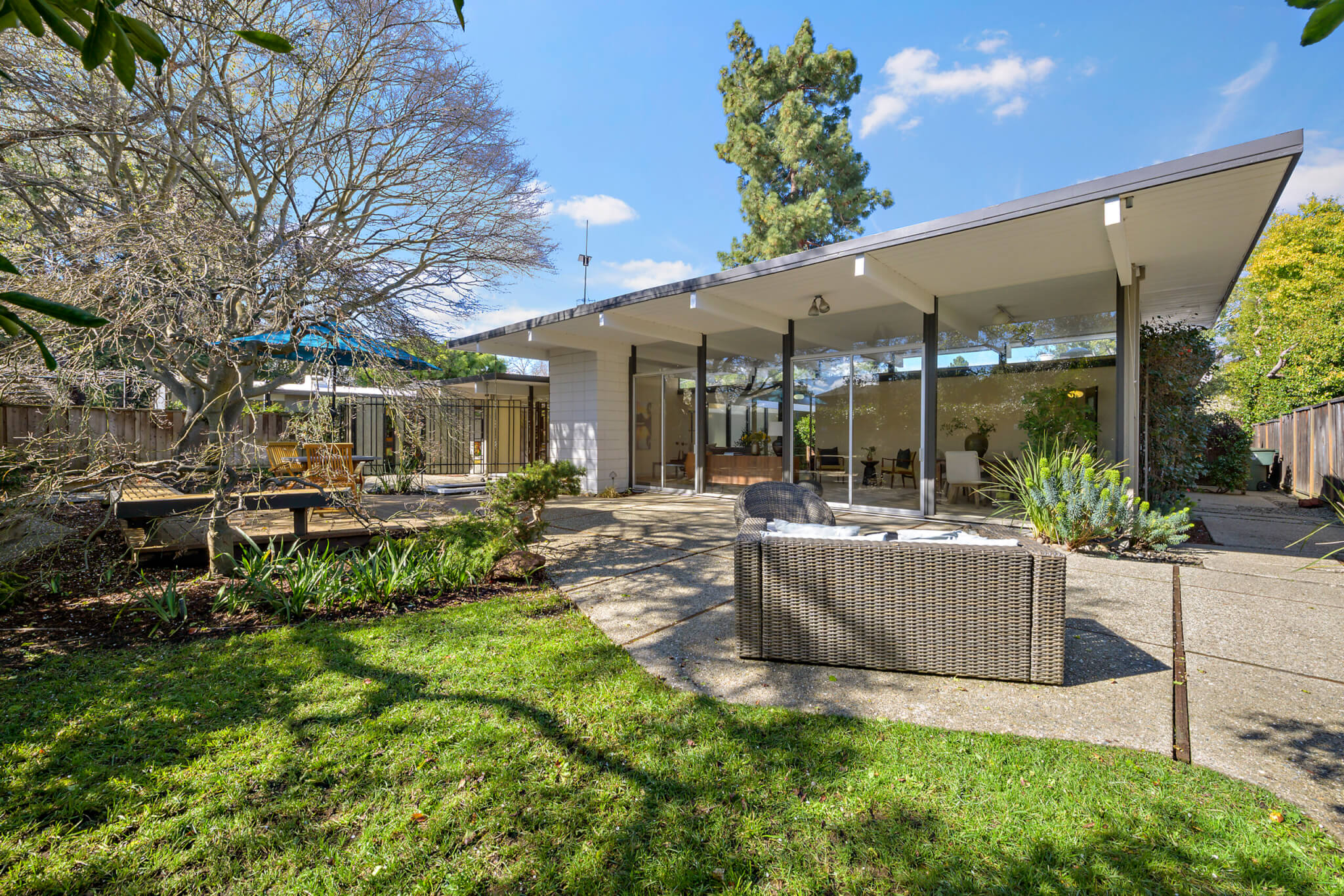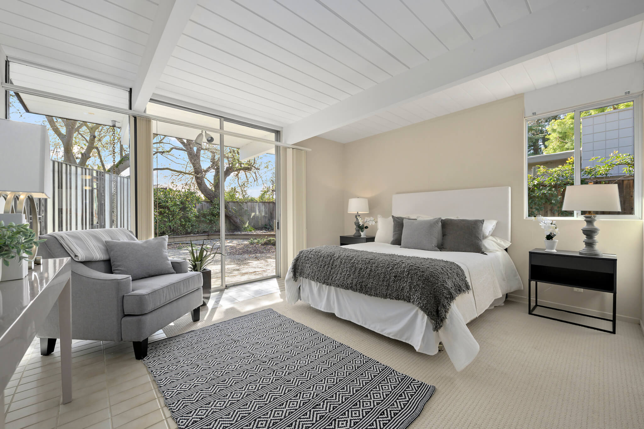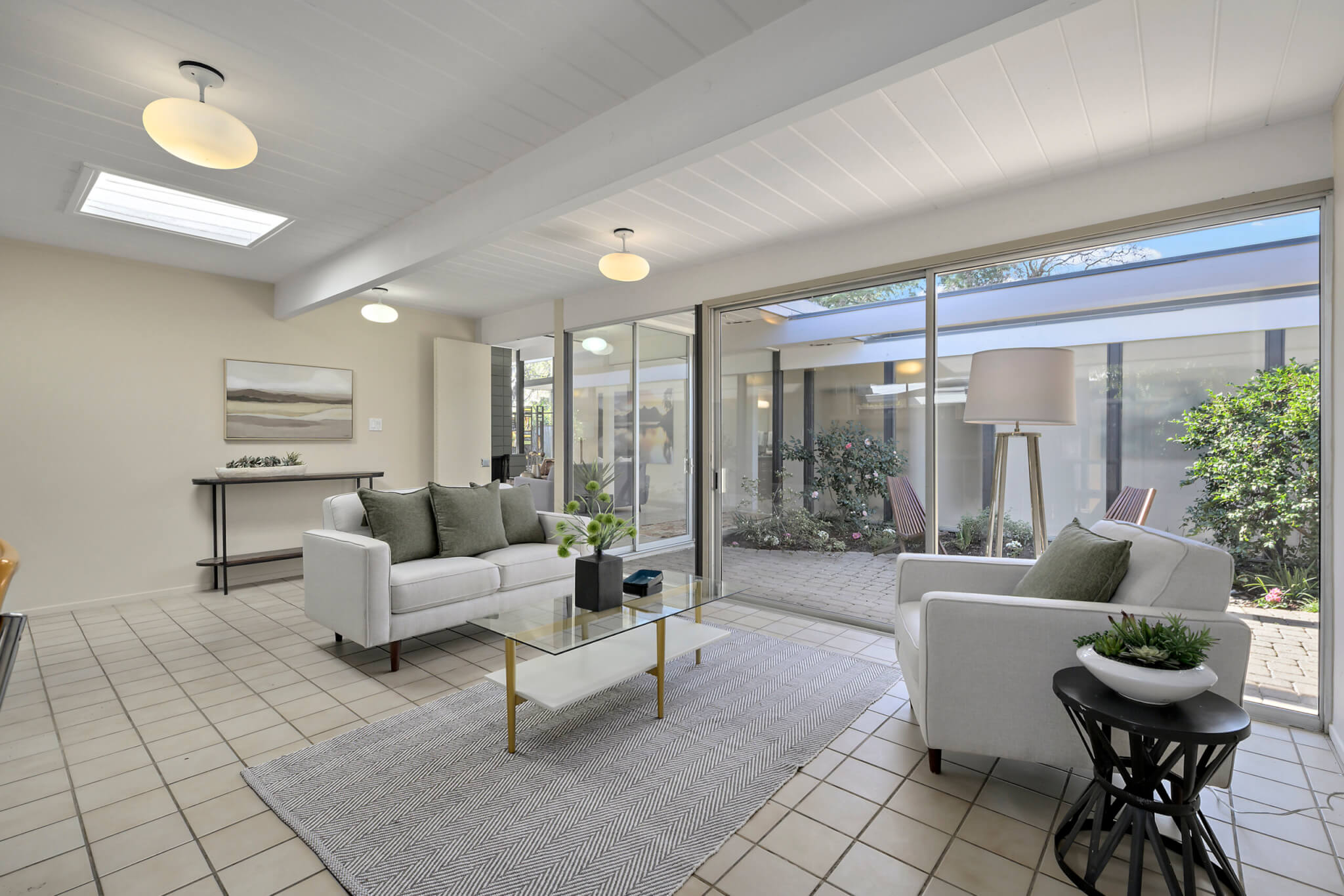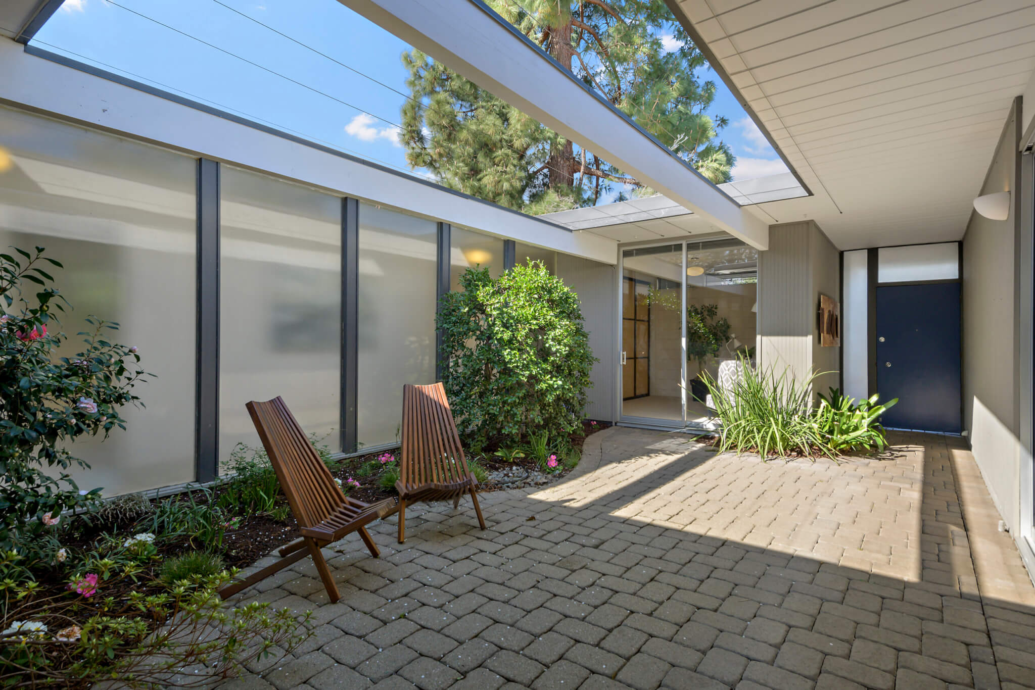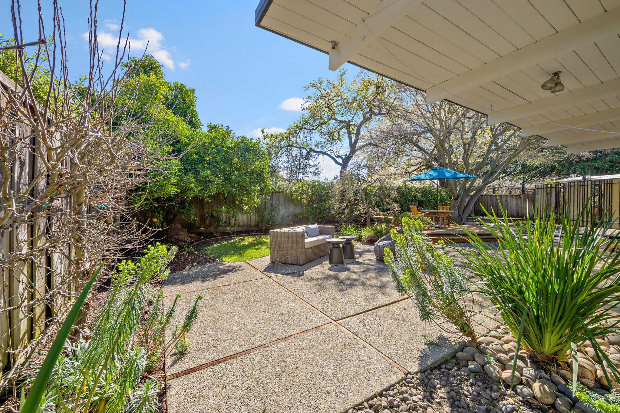 This lovely four bedroom, two bath, 2038 sqft home, sits on a large 7841 sf lot in a quiet cul-de-sac of the desirable, neighbor-friendly Los Arboles neighborhood in Palo Alto. Enter through the front door into a welcoming, private, light-filled open-air atrium courtyard. Continue into the large living room with fireplace and an adjacent dining room. Open beam ceilings and walls of glass bring the outside in, allowing for natural light and indoor/outdoor living. Relax or entertain indoors or outdoors and enjoy the view of the sprawling, private backyard. A large side yard is a perfect spot for gardens. The kitchen opens to the family room which looks out to the atrium. Attractive kitchen and bathrooms. Conveniently located near many amenities such as: the Community Center, Magical Bridge Playground, supermarket, coffee shops, parks, YMCA, Swim & Tennis Club. And Palo Alto’s top rated schools.